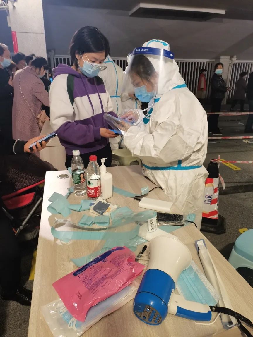 ▲4月3日—5日,应急防疫先锋队的成员们,分工合作、各负其责,积极配合工作人员,有人在入口处引导候检居民备检,有人不停提醒大家佩戴口罩、保持“一米线”距离。