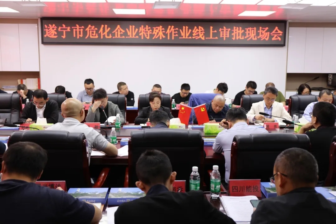 在危化企业特殊作业线上审批会议上,市应急局组织学习了《危险化学品企业特殊作业安全规范》,四川美青化工有限公司对特殊作业线上审批进行了经验分享,射洪市应急局、大英县应急局就相关工作作交流发言,市经信局、市应急局就相关工作进行了安排部署。