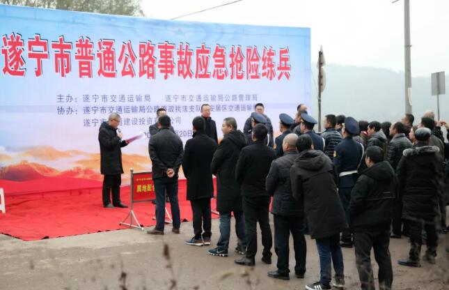 12月20日,我市在安居区国道318线K1380+500塘河坝老鹰岩举行2019年遂宁市普通公路事故应急抢险演练。应急演练主要模拟因地震导致国道318线K1380+500处上边坡山体垮塌致使公路断道后,对公路阻断后的应急响应、现场布控、交通疏导、应急救援、道路抢通全部过程,以此来检验预案、锻炼队伍,积累反应快速、抢险得力、运转良好、联动响应的应急抢险保障体系经验。市应急局莅临现场指导。
