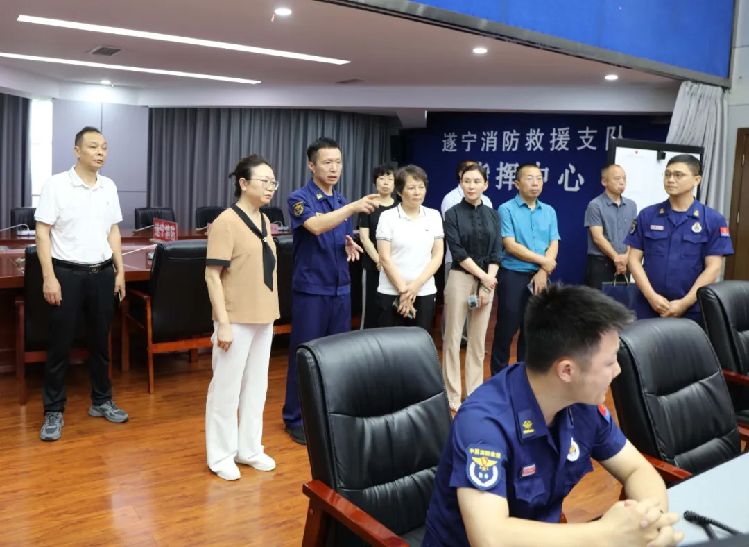 在船山区桂花镇专职消防救援站、遂宁市气象局、遂宁市消防救援支队和遂宁市智慧消防运维中心,调研组深入了解了基层应急管理水平及应急救援力量建设、突发公共事件预警信息发布、火灾防范预警及突发事件抢险救援应急指挥等工作开展情况,并提出意见建议。