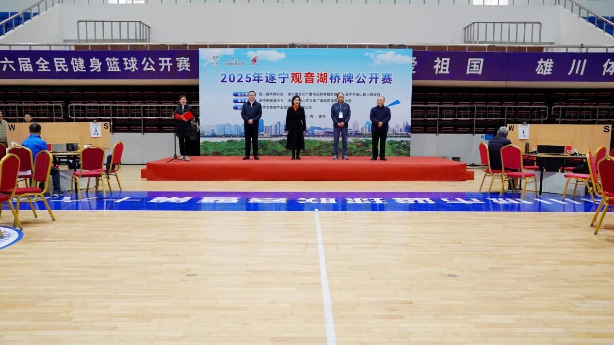 11月21日上午,2025年遂宁观音湖桥牌公开赛在船山体育馆正式拉开帷幕。遂宁市委常委、宣传部部长涂虹宣布开赛,省桥牌协会党支部书记、副会长赵和平,遂宁市桥牌协会会长杨华民出席开幕式。船山区委书记、遂宁高新区党工委书记唐统致辞,遂宁市委宣传部副部长,市文化广电体育旅游局党组书记、局长代萍主持开幕式。
