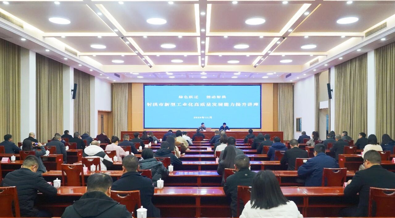 11月28日,射洪市举行新型工业化高质量发展能力提升讲座,邀请国家制造强国建设战略咨询委员会委员、中国人民大学商学院贸易经济系教授徐佳宾作专题授课。受遂宁市委常委,射洪市委书记张俊懿委托,市委副书记、市长王能主持讲座。