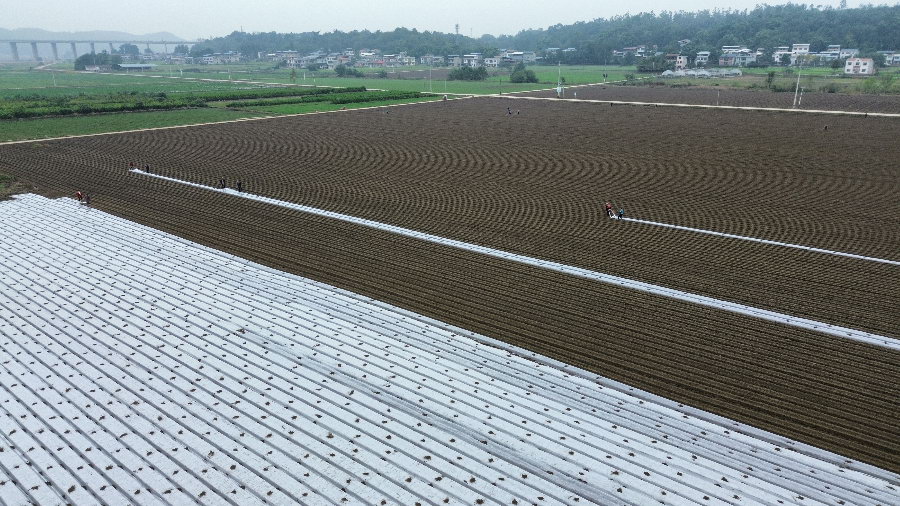 11月7日上午,记者走进唐家乡西堰村,上千亩平整的蔬菜种植基地里,船山区胜强蔬菜种植家庭农场的负责人余强正组织村民抢抓墒情,播种萝卜、覆盖地膜。村民们三人一组,分工协作,勾勒出一幅生动的“秋耕农忙图”。据了解,胜强蔬菜种植家庭农场蔬菜种植总面积达1200余亩,其中商品萝卜占500余亩,产品主要销往成都、重庆等地的批发市场和商超。