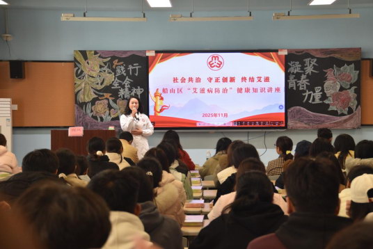 讲座上,船山区妇幼保健院妇产科副主任医师周凤结合青年学生的认知特点,用通俗易懂的语言、真实鲜活的案例,详细讲解了艾滋病的传播途径、临床症状、预防措施以及国家关怀政策,重点纠正了同学们对艾滋病传播的常见误区,引导大家消除对艾滋病感染者的歧视,树立“知艾、防艾、不恐艾”的正确观念。互动问答环节里,周凤耐心解答了关于艾滋病检测、日常防护等方面的问题,现场氛围热烈。