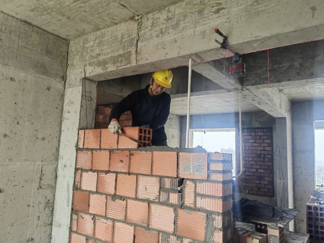 近日,记者来到船山区南片区城市有机更新项目(开善片区)建设现场看到,该工程项目的1号楼和2号楼已顺利完成封顶。数十名施工人员正分工协作、紧密配合,进行室内填充墙砌筑和二次结构施工。